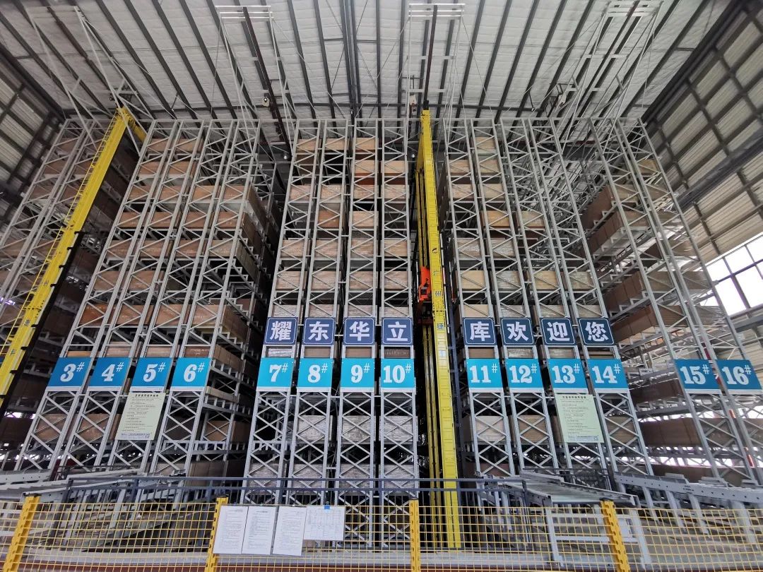 耀东华智能立体库是目前世界上单体容量最大的木质人造板智能立体库,科学布局自动化立体仓储平台,具备智能化水平高、空间利用率高以及保证基材板质量,避免因重压而变形的特点。