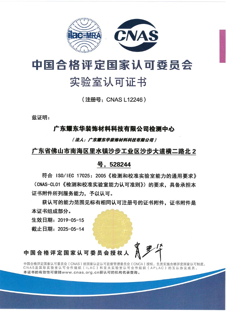 可在认可的业务范围内使用“中国实验室国家认可”标志,以表明认可实验室有资格获得CNAS认证,红棉花板材是值得客户和消费者信赖的。