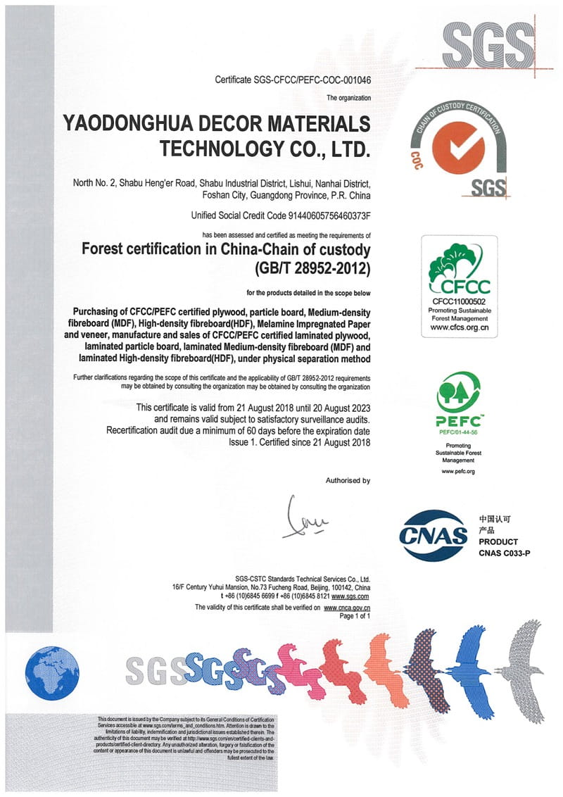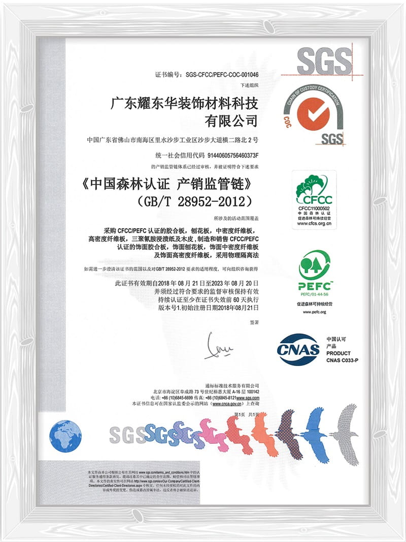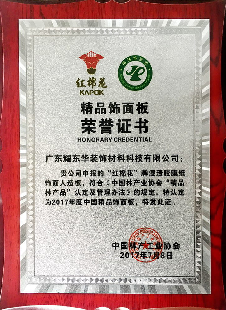 精品饰面板证书