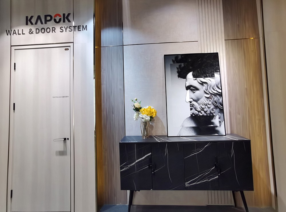 本次广州设计周展出了红棉花精准对纹20/21年新花色,魁北克枫木、波特兰胡桃、克里特橄榄木、温哥华枫影、卑诗影木、帕多瓦橡木、法国尼斯、科蒂纳胡桃……面对大众美学的提升,KAPOK用艺术为设计赋能,营造自然舒适的视觉和居住体验。