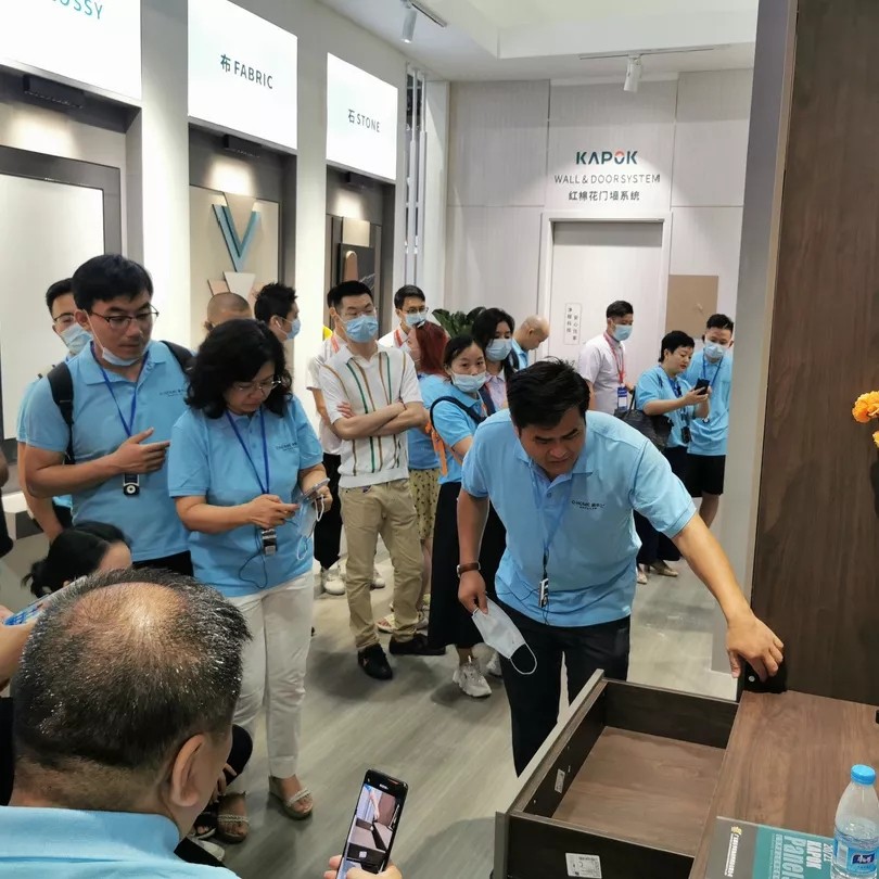 而红棉花板材也在广交会B区13.1号馆52展位完美亮相,除了为大家呈现红棉花非凡的花色新品、超前的美学理念、也开启了新一轮的新媒体人打卡活动,线上线下一起抓。